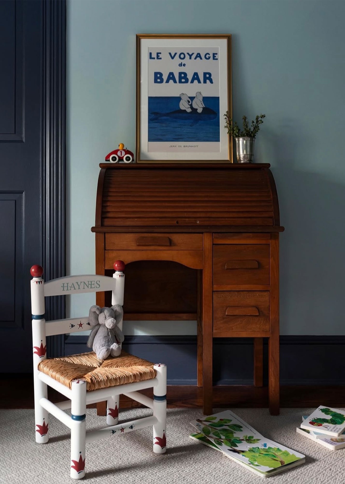Our chairs are sustainably handmade in Portugal using solid beech with a woven rush seat. Each chair is then handpainted in our studio in Sussex, England, using water-based non-toxic paints.