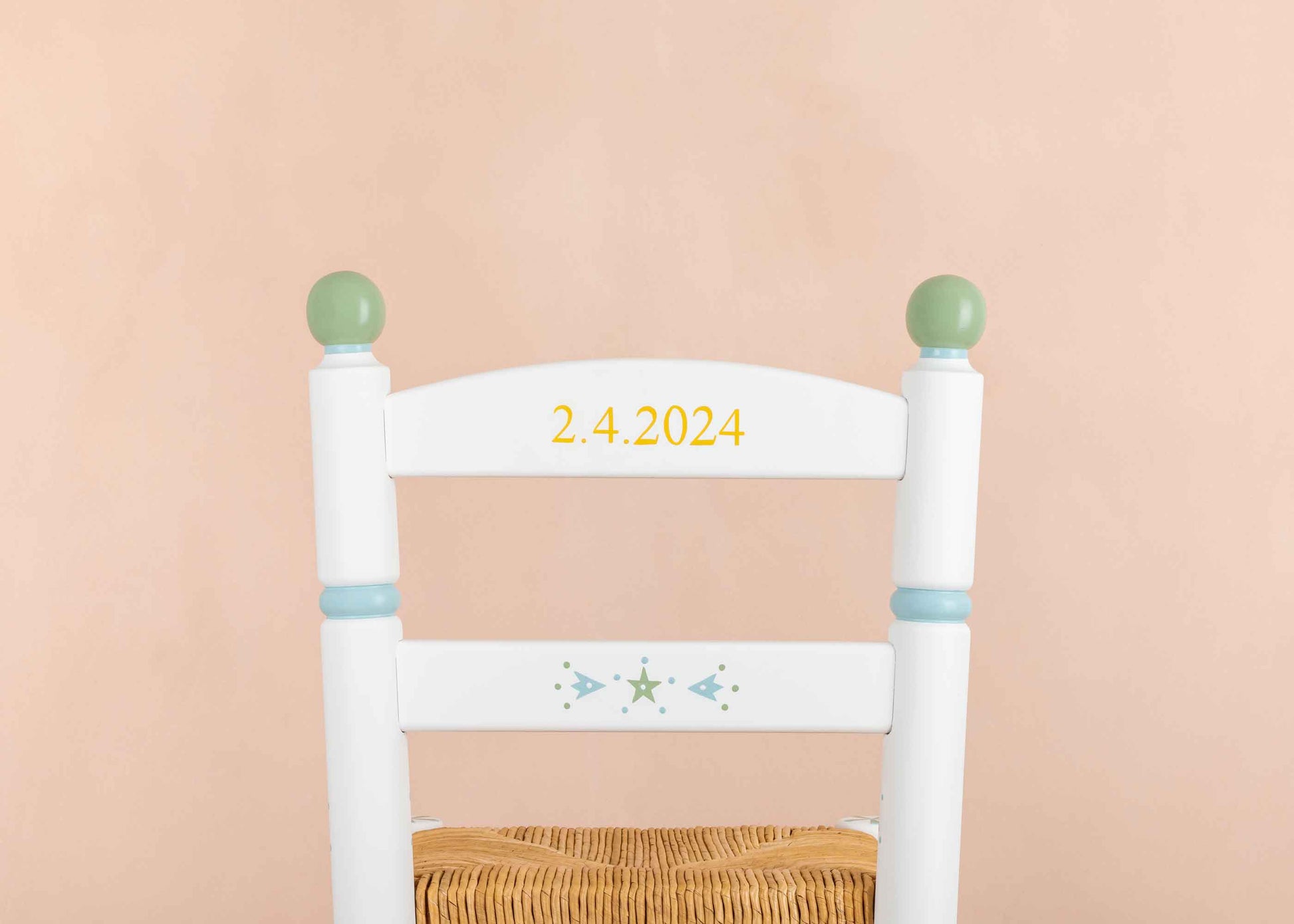Each Ready to Shop chair includes a personalised name and date in a colour of your choice.